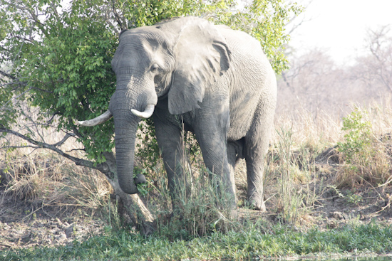An elephant drinking invigorating water from the Kafue river. The dry season got all the animals to wander closer to the river.