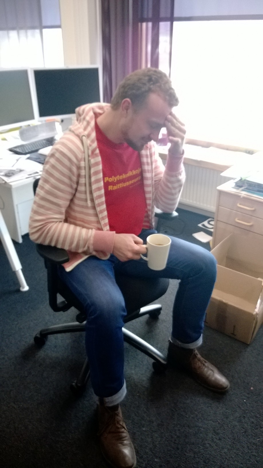 10.00-12.00 Hallituksen aamukoulu: Koponen kouluttaa hallitusta eduskuntavaalien soitteluihin liittyen (kaikilla hallituslaisilla on 10 läpi soitettavaa eduskuntavaaliehdokasta). Jutellaan myös erilaisista asumistukimuodoista ja pohdimme, että mikä niistä on opiskelijoiden kannalta paras. Mielenkiintoista, mutta kinkkistä.