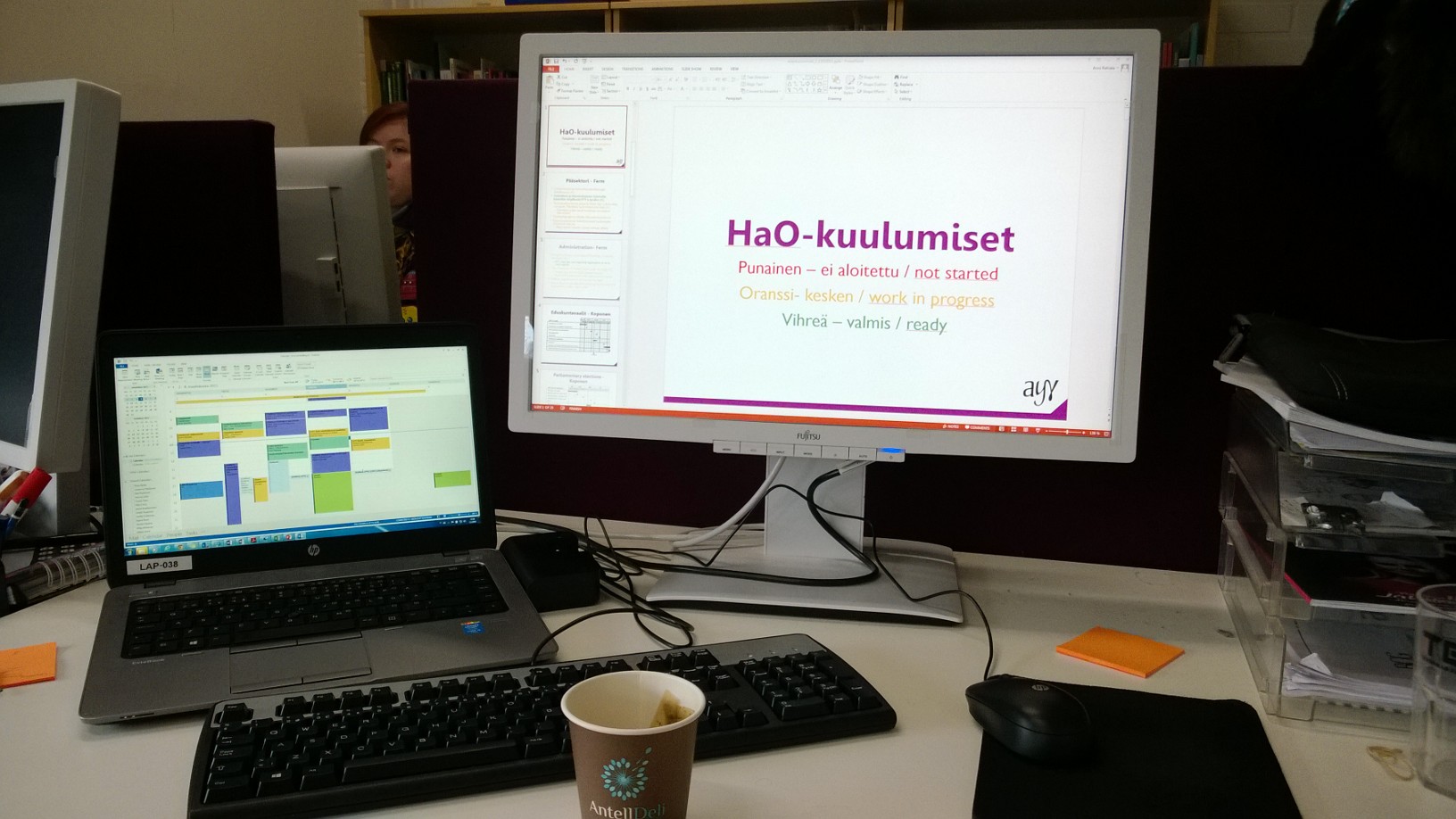 9.00-9.50 Yrppämeetti: Maanantai alkaa aina yhteisellä hetkellä yrityssuhdekoordinaattori Mikon kanssa. Käytiin läpi viikon hommat ja viikonlopun kuulumiset.