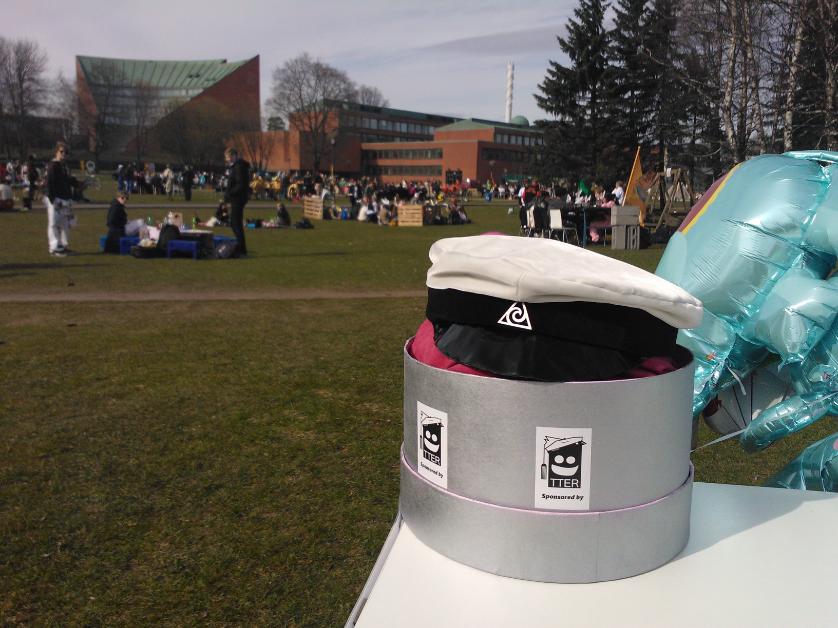 Tänään tämä pieni lakki on sitten viettänytkin opiskelijaelämää oikein urakalla – osallistuin nimittäin kaksille huikeille sitseille, ensin Otaniemessä järjestettyihin Sitsikisoihin ja sitten vielä NESU-KY:n Wappusitseille!