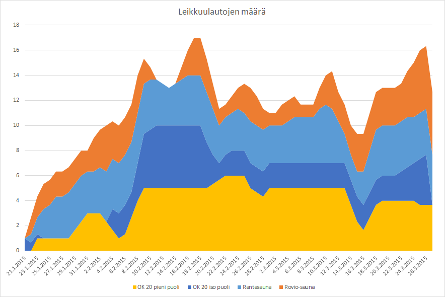 Kuten kuvasta näkyy, ei määrä ole kovinkaan stabiili. On vaikea sanoa että johtuuko tämä sitten huolimattomasta tarkastuslistojen täytöstä vai lautojen varsinaisesta katoamisesta.