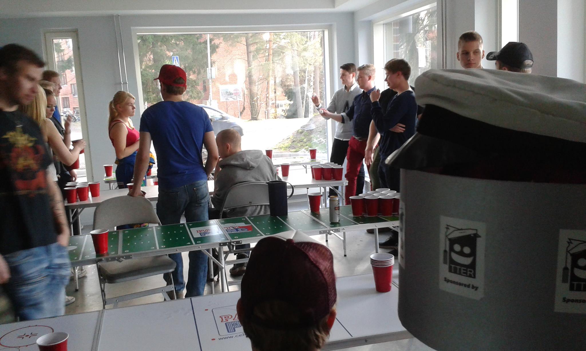 Illalla pääsin vielä pitkästä aikaa viettämään oikein kunnon opiskelijaelämää, kun ystäväni Aalto-yhteisöjaosto Aavasta ottivat minut mukaan Aalto BeerPongin ja Aalto Cocktailin yhteiseen Cocktailpongiin. Vaikka tältä reissulta saattoi jäädä valkeaan pintaani muutama roiske, oli aivan huikeaa päästä nauttimaan hyvästä seurasta ja aidosta Aalto-hengestä (eikä kunnon lakki sitä paitsi ole mitään ilman muutamaa tahraa). Kiitos kaikille paikalla olleille hauskasta illasta ja huikeista peleistä! Toivottavasti friendsieistä tuli onnistuneita 😉