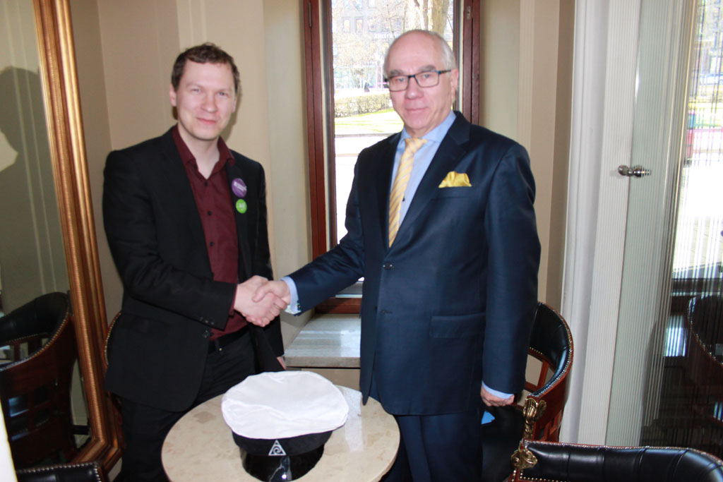 Päivän toinen tapaamiseni oli Kämpissä vuorineuvos Jorma Elorannan kanssa. Aalto-yliopiston alumni ja entinen TKY:n pääsihteeri kertoi vuosikymmeniä kestäneistä vappuperinteistään. Minä nuorena lakkina olin aivan ymmyrkäisenä siitä miten pitkä historia meillä oikeastaan onkaan! Entinen Polyteknikkojen Raittiusseuran puheenjohtaja muisteli myös kuinka raittiusseuralaiset aikoinaan pyyteettömästi nauttivat alkoholia estääkseen sen joutumisen vastuuttomiin käsiin. Elorannan vinkit opiskelijaelämään täältä!