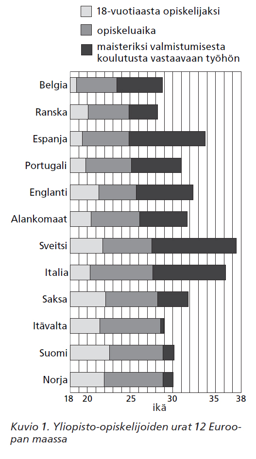 Keskustelu työurien pidentämisestä opiskeluaikoja lyhentämällä tiivistyi 17.1 YLE:n uutiseen, jonka mukaan vain joka kolmas kaksiportaisesta maisterin tutkinnosta valmistunut yliopisto-opiskelija sai tutkintonsa tehtyä viidessä vuodessa tai nopeammin.