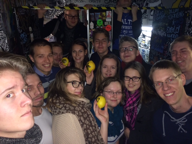 Torstain kuva on otettu vasta illalla. Itse päivään ehti kuulua tapaaminen Espoon kaupungin projektijohtajan kanssa, tapaaminen Aallon vararehtorin kanssa sekä AYY:n koposektorin yhteinen tapaaminen KyKy-suunnittelijan kanssa. Kokosimme yhteen työkaluja, joilla opintoja Aallossa voidaan sujuvoittaa. Toimistolta suuntasin suoraan oman kummiyhdistykseni Prosessiteekkareiden fuksisitseille, joista kuva on otettu.
