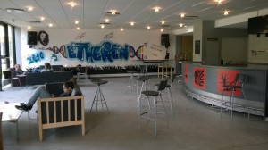 Jokaisessa kampuksen neljänneksessä on opiskelijavoimin pyörivä baari. Kuvassa kemian osaston Etheren