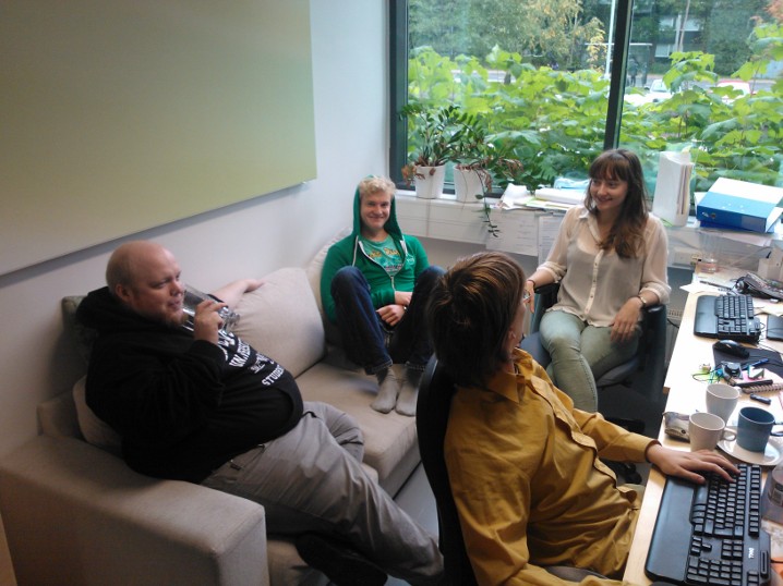 Joka tiistaiaamu klo 11 AYY:n koulutuspoliittinen sektori kokoontuu viikkopalaveriin. Kuvassa koko koposektori, eli asiantuntijat Hannu ja Juha sekä hallitusvastaavat Perttu ja Ilmi. Tänä tiistaina aiheita olivat mm. halloped-valinnat, ensi vuoden kopotoimijoiden rekrytoinnit, opiskelun sujuvoittaminen, kandipalautekierroksen avautuminen sekä Opetus-ja kulttuuriministeriön rahoitusmalli. Tiistaihin sisältyi myös mm. kummiyhdistyksen hallituksen kokouksessa käymistä sekä juoksevien asioiden ja sähköpostin hoitamista.